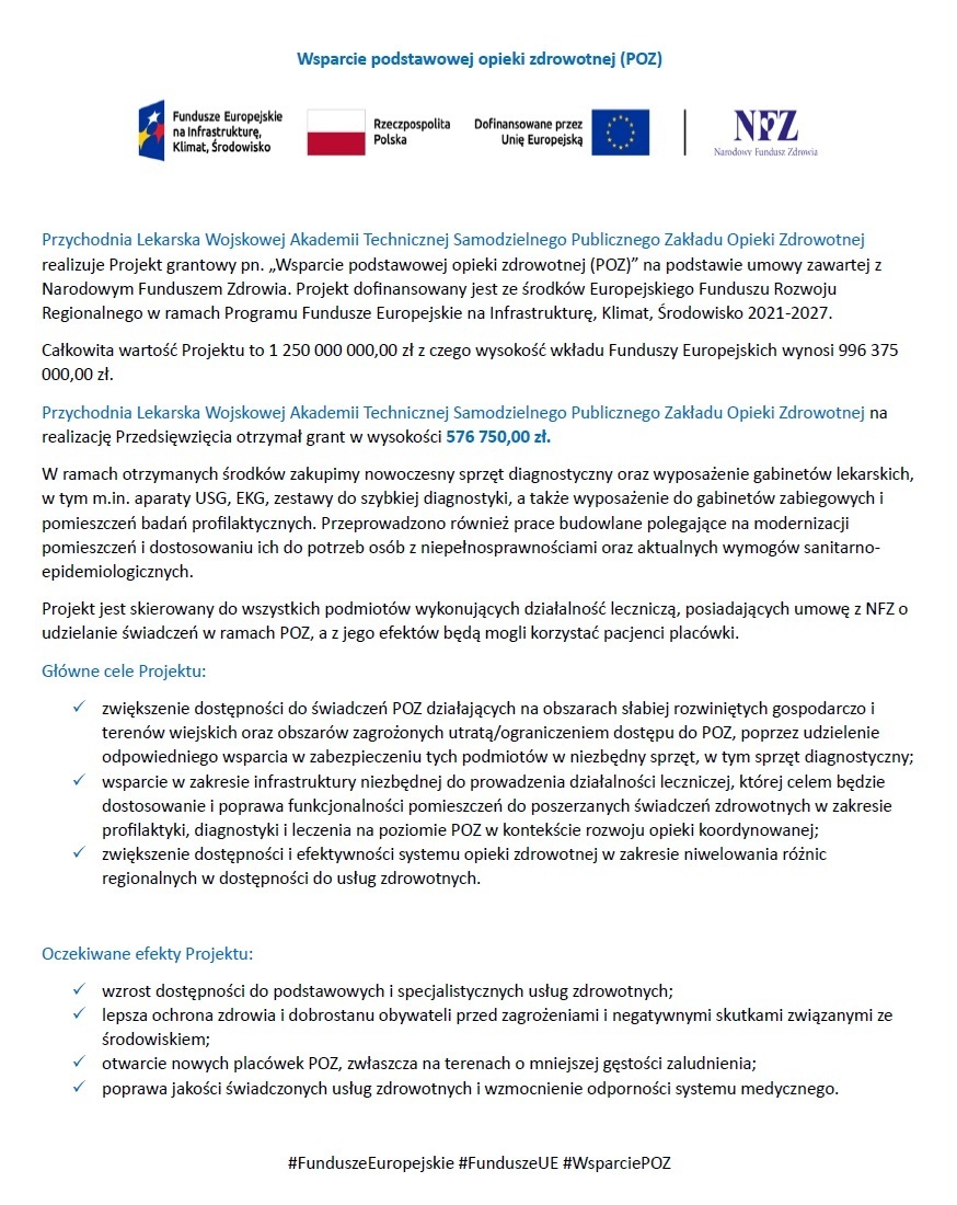 Szanowni Państwo, Informujemy, że rozszerzamy ofertę usług komercyjnych w Przychodni Lekarskiej WAT SPZOZ. Od najbliższego poniedziałku (30.09.2024 r...